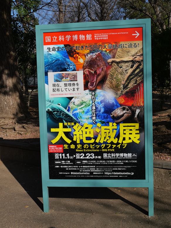 それで興味があった大絶滅展を見に上野にある国立科学博物館へ18日(日)行ってきました。